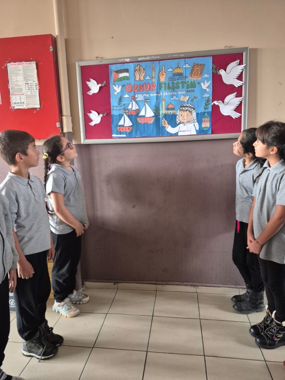 Öğrencilerimizle birlikte, mazlum coğrafyalarda yaşanan insanlık dramlarına duyarsız kalmamak ve barış, empati ve adalet kavramlarını pekiştirmek amacıyla “Filistin Farkındalık Etkinliği” düzenledik.